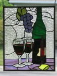 I enjoyed searching for the right colors of glass at both Downey Stained Glass in Fredericton and Phoenix Stained Glass in Portland. Monica found the perfect glass for the wine in the glasses while poking through a small box of glass scraps at Phoenix Stained Glass in Portland. Such luck!